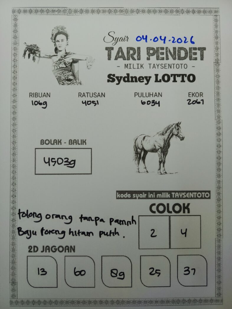Syair Tari Pendet Sydney Hari ini Sabtu, 04 April 2026