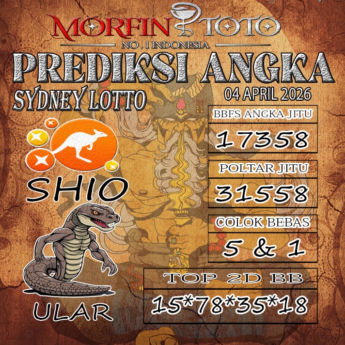 Syair lipan sakti SYDNEY LOTTO Hari ini Sabtu, 04 April 2026