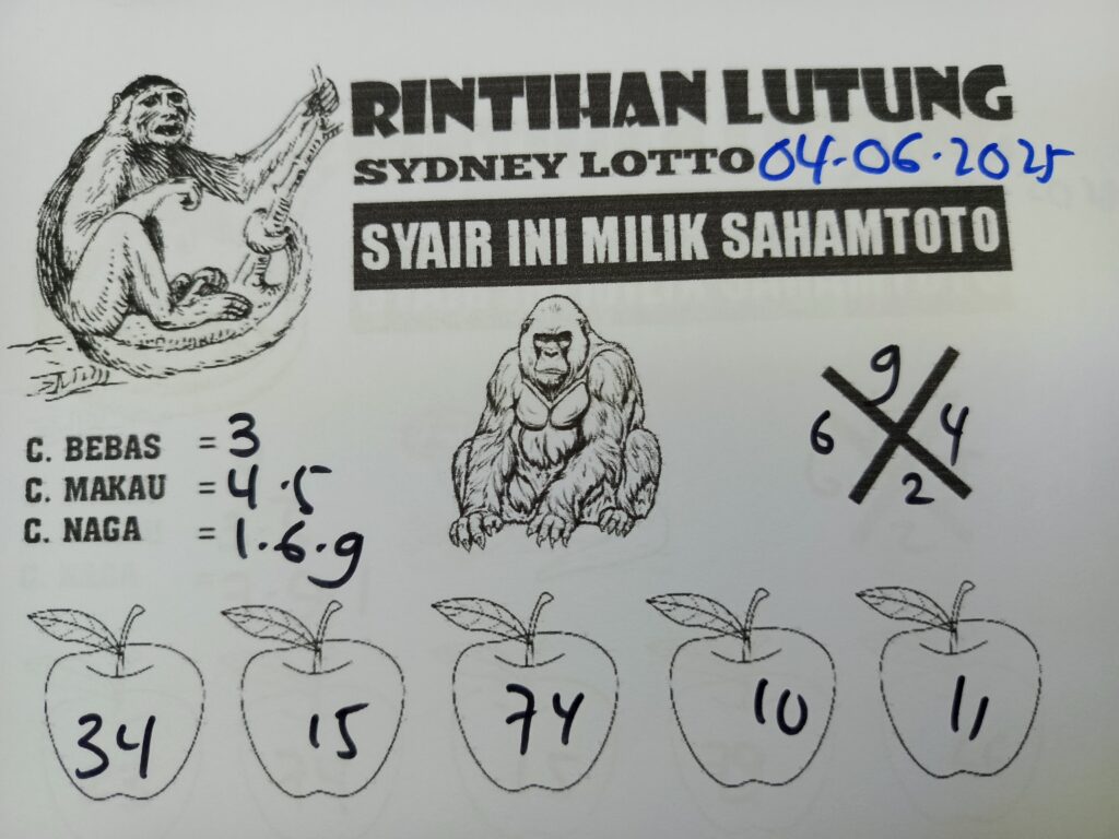 Syair Rintihan Lutung Sydney lotto Pools Hari ini Rabu 04 Juni 2025