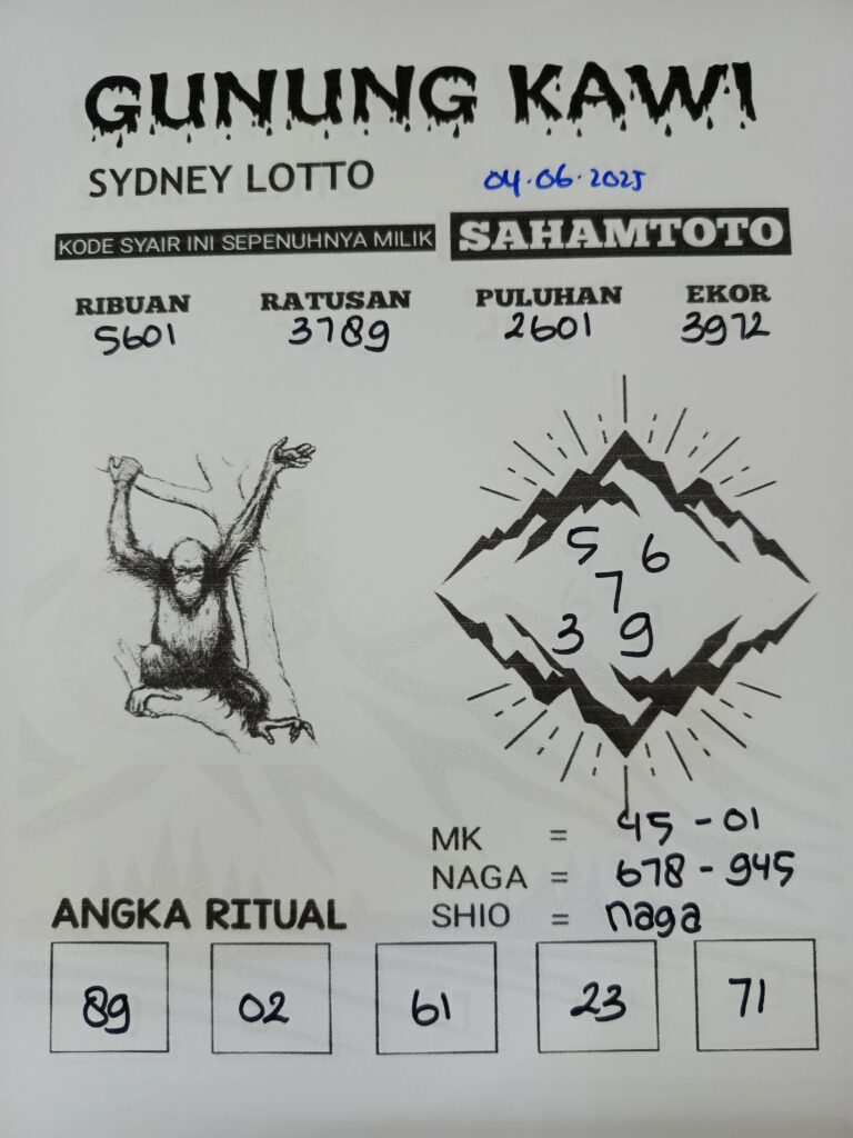 Syair Gunung Kawi Sydney lotto Pools Hari ini Rabu 04 Juni 2025
