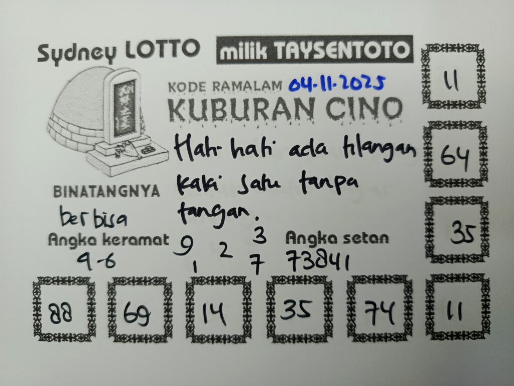 Syair Kuburan Cino Sydney Hari ini Selasa, 04 November 2025