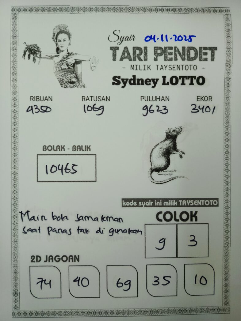Syair Tari Pendet Sydney Hari ini Selasa, 04 November 2025
