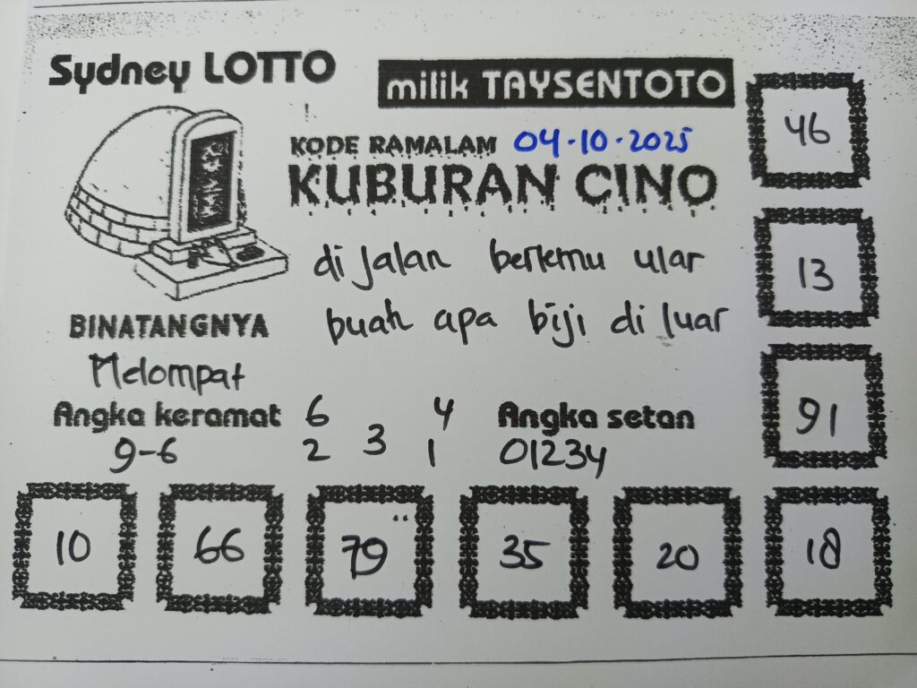 Syair Kuburan Cino Sydney Hari ini Sabtu, 04 Oktober 2025