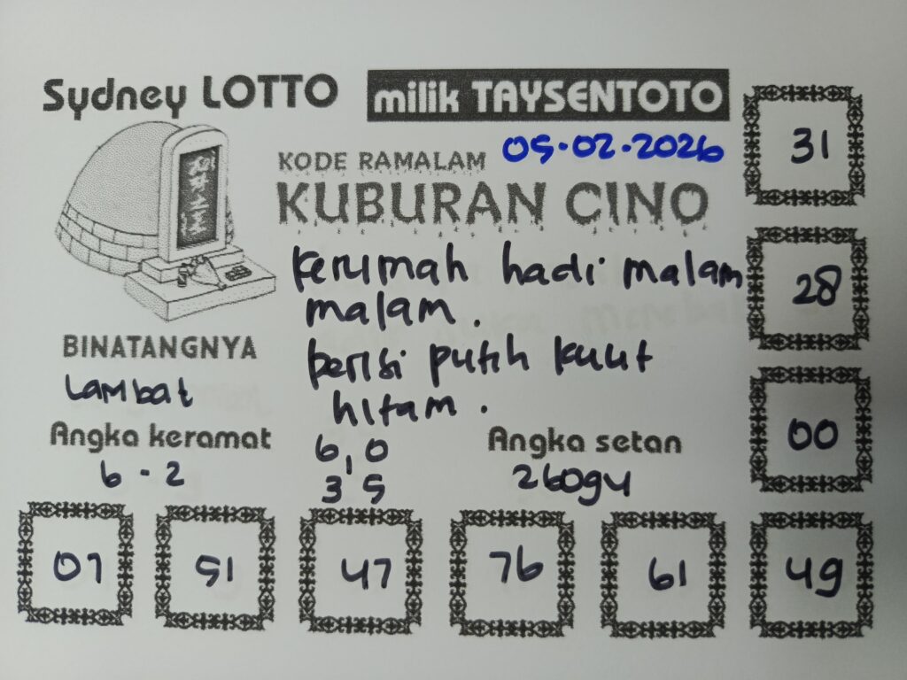 Syair Kuburan Cino Sydney Hari ini Kamis, 05 Februari 2026