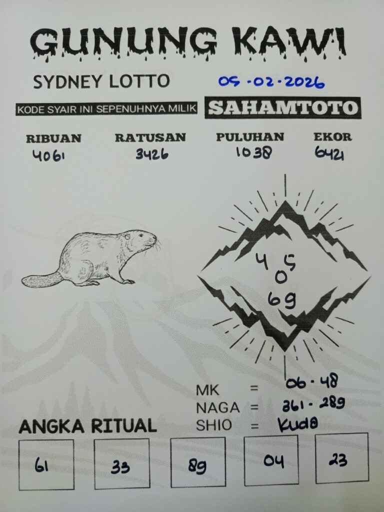 Syair Gunung Kawi SYDNEY LOTTO Hari ini SENIN 02 Februari 2026