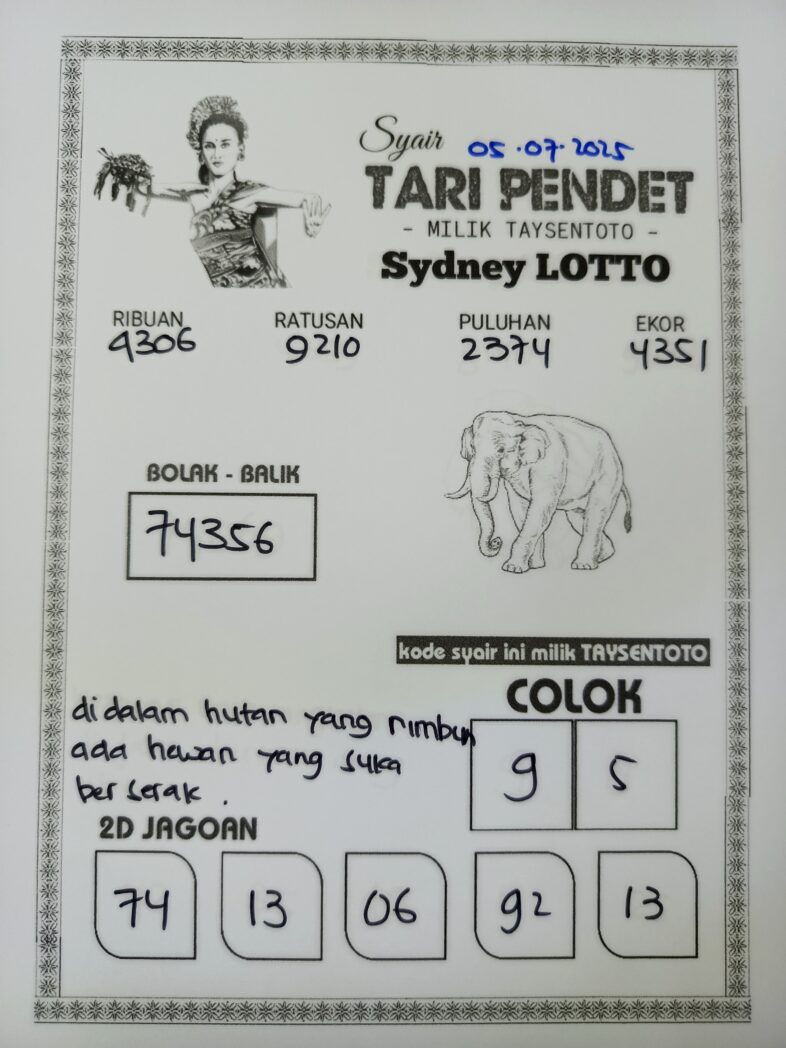 Syair Tari Pendet Sydney Hari ini Sabtu, 05 Juli 2025