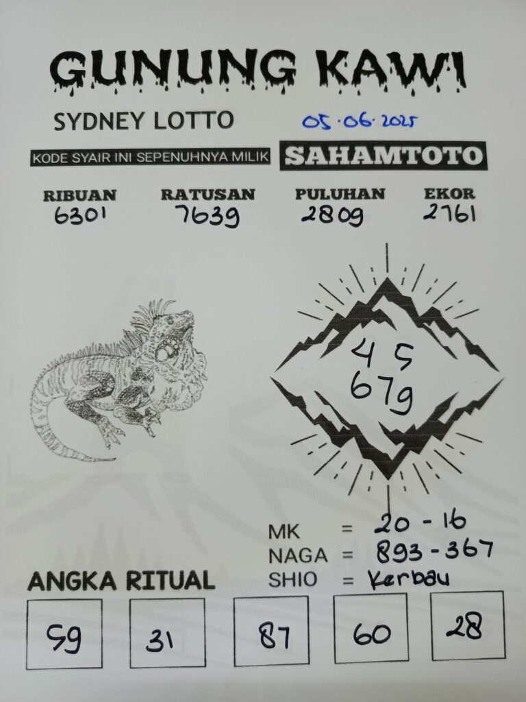 Syair Gunung Kawi Sydney lotto Pools Hari ini Kamis 05 Juni 2025