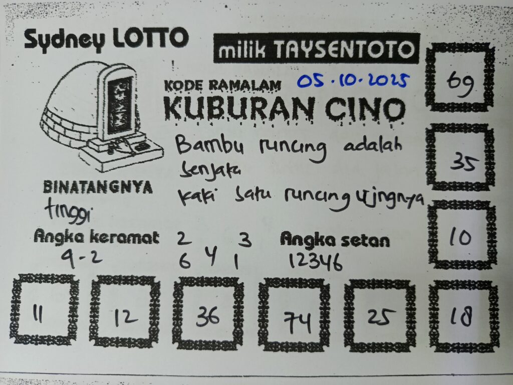 Syair Kuburan Cino Sydney Hari ini Minggu, 05 Oktober 2025
