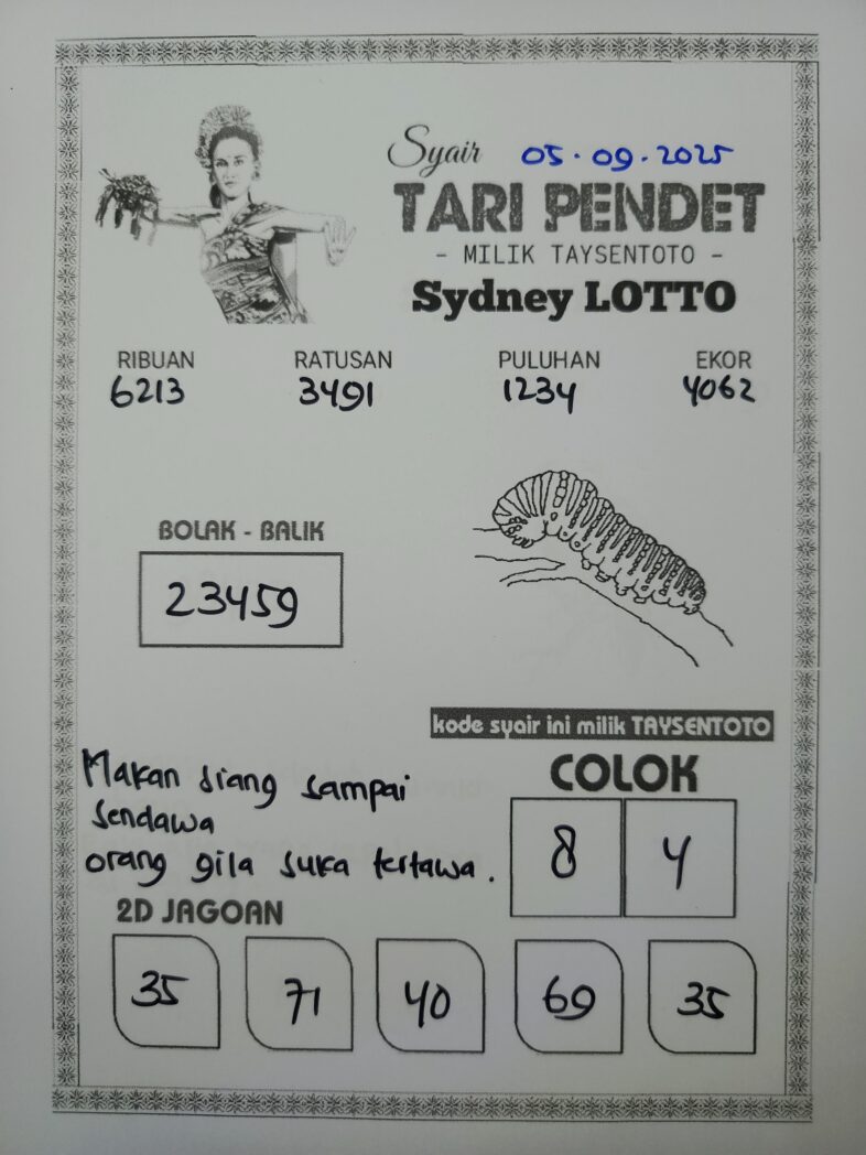Syair Tari Pendet Sydney Hari ini Jumat, 05 September 2025