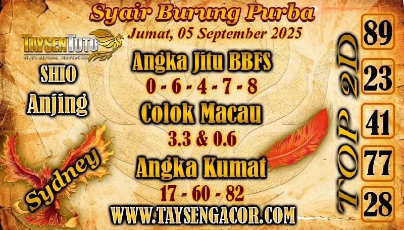 Syair Colok Bebas Sydney Hari, Jumat, 05 September 2025