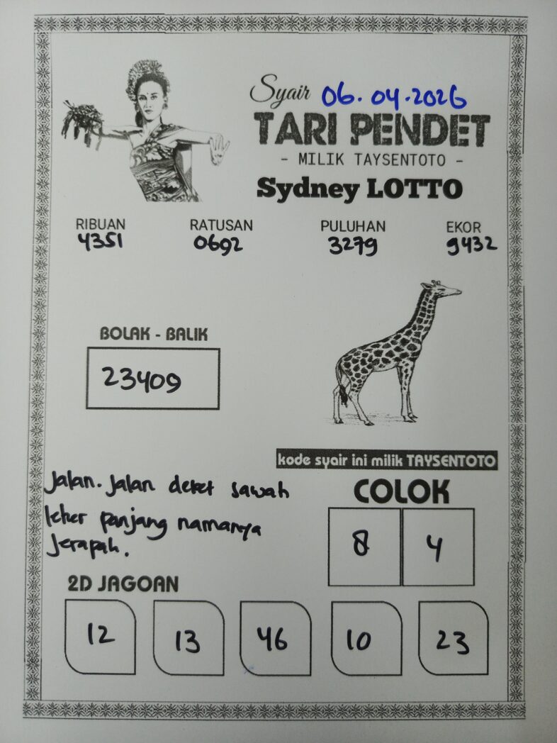 Syair Tari Pendet Sydney Hari ini Senin, 06 April 2026