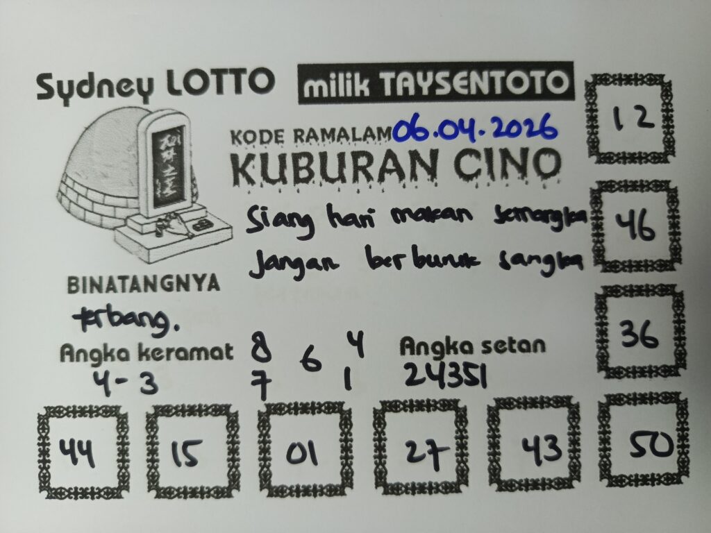 Syair Kuburan Cino Sydney Hari ini Senin, 06 April 2026