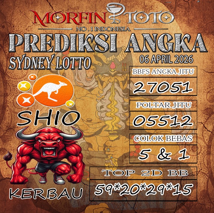 Syair lipan sakti SYDNEY LOTTO Hari ini Senin, 06 April 2026