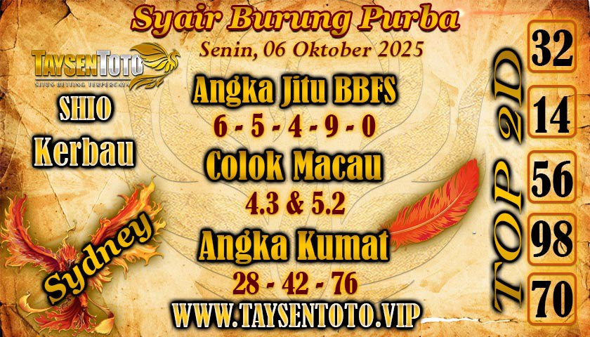 Syair Burung Purba Sydney Hari ini Senin, 06 Oktober 2025