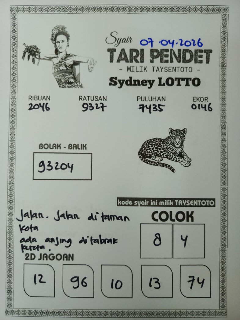 Syair Tari Pendet Sydney Hari ini Selasa, 07 April 2026