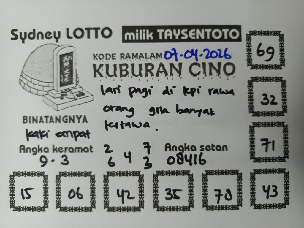 Syair Kuburan Cino Sydney Hari ini Selasa, 07 April 2026