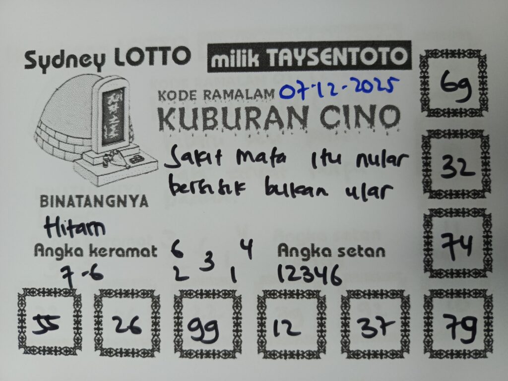 Syair Kuburan Cino Sydney Hari ini Minggu, 07 Desember 2025