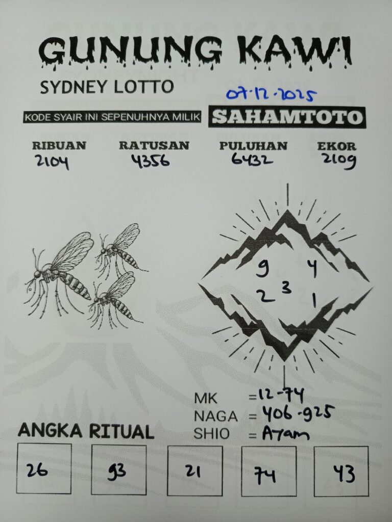 Syair Gunung Kawi Sydney Lotto Hari ini Sabtu 06 Desember 2025