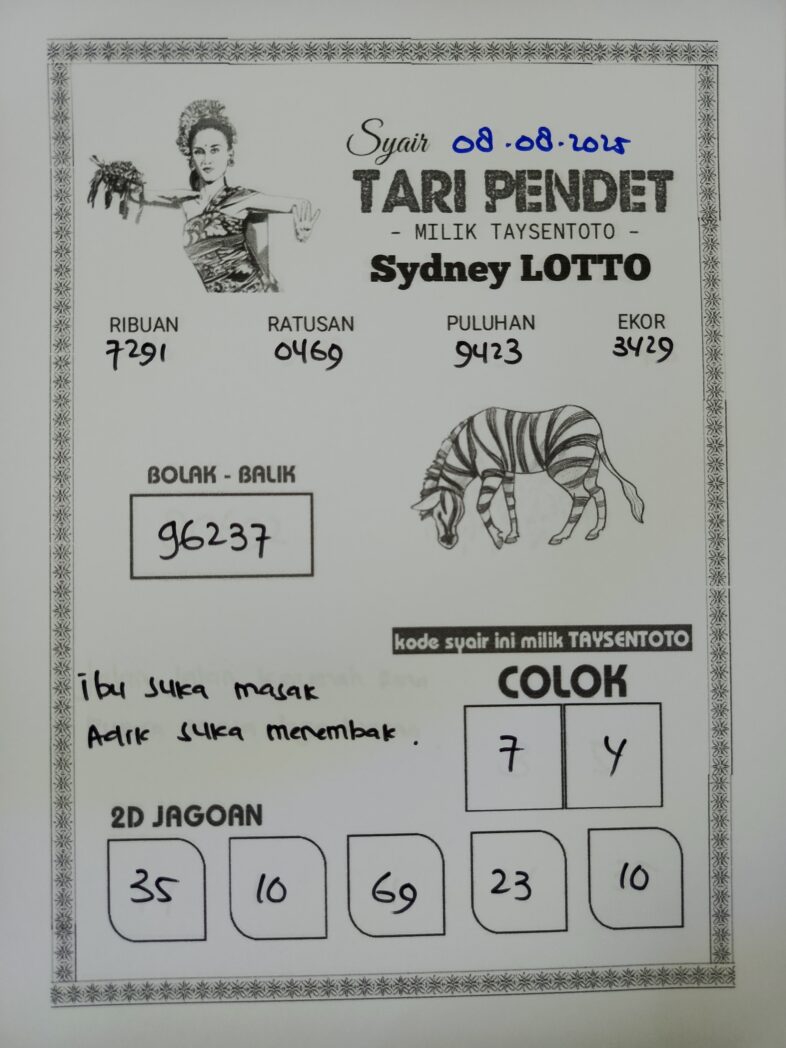 SYAIR TOGEL SENTANA  SYDNEY LOTTO 08 AGUSTUS 2025
