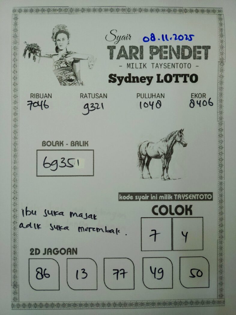 Syair Tari Pendet Sydney Hari ini Sabtu, 08 November 2025