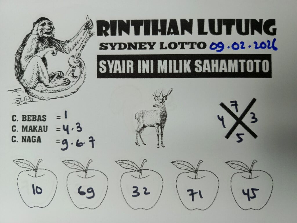 Syair Rintihan Lutung SYDNEY LOTTO Hari ini 08 Februari 2026