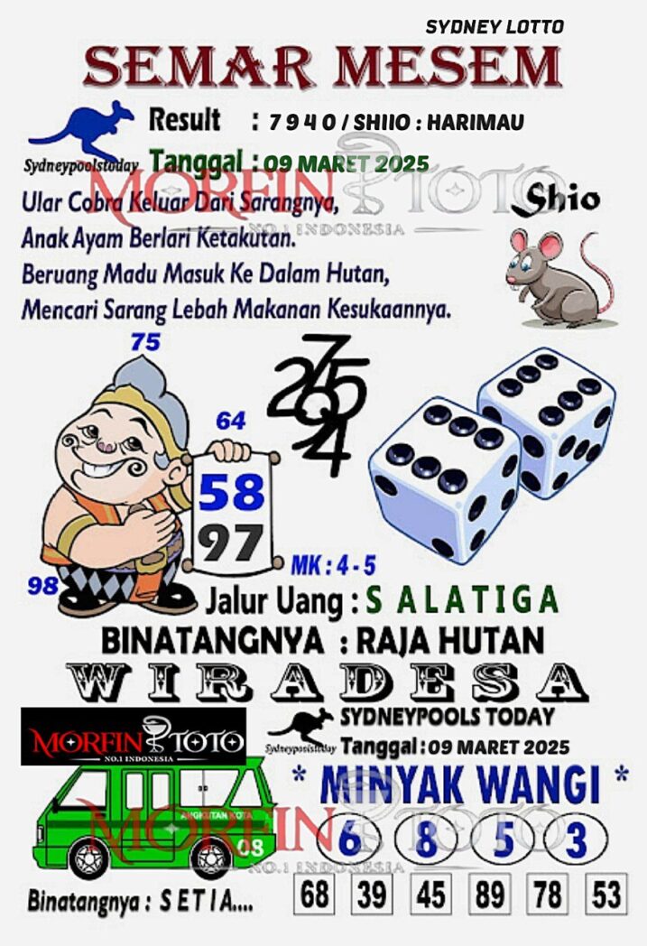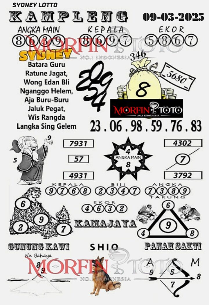 Syair Prediksi Angka Sydney Hari ini Minggu, 09 Maret 2025