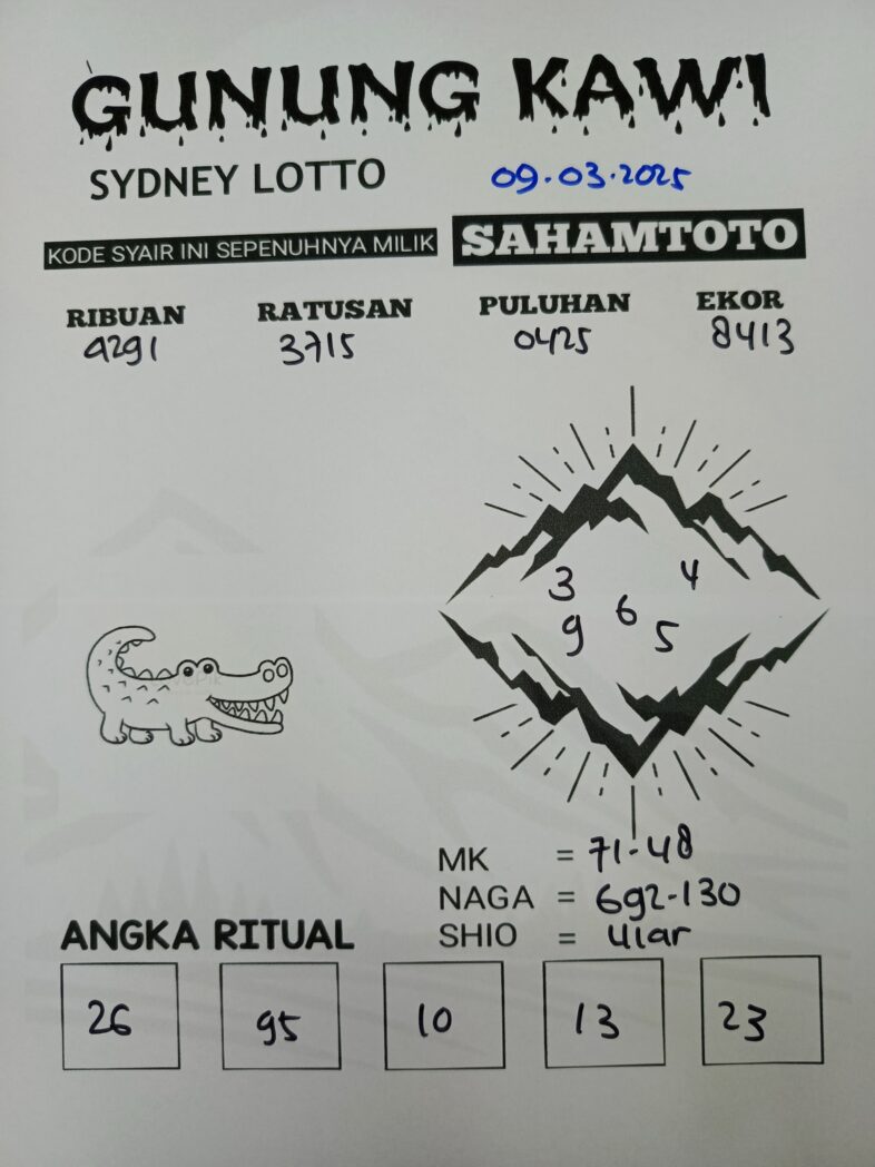 Syair gunung kawi sydney lotto minggu 9 maret 2025
