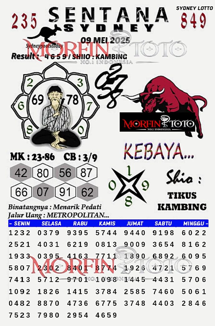 SYAIR TOGEL SENTANA SYDNEY LOTTO 09 MEI 2025
