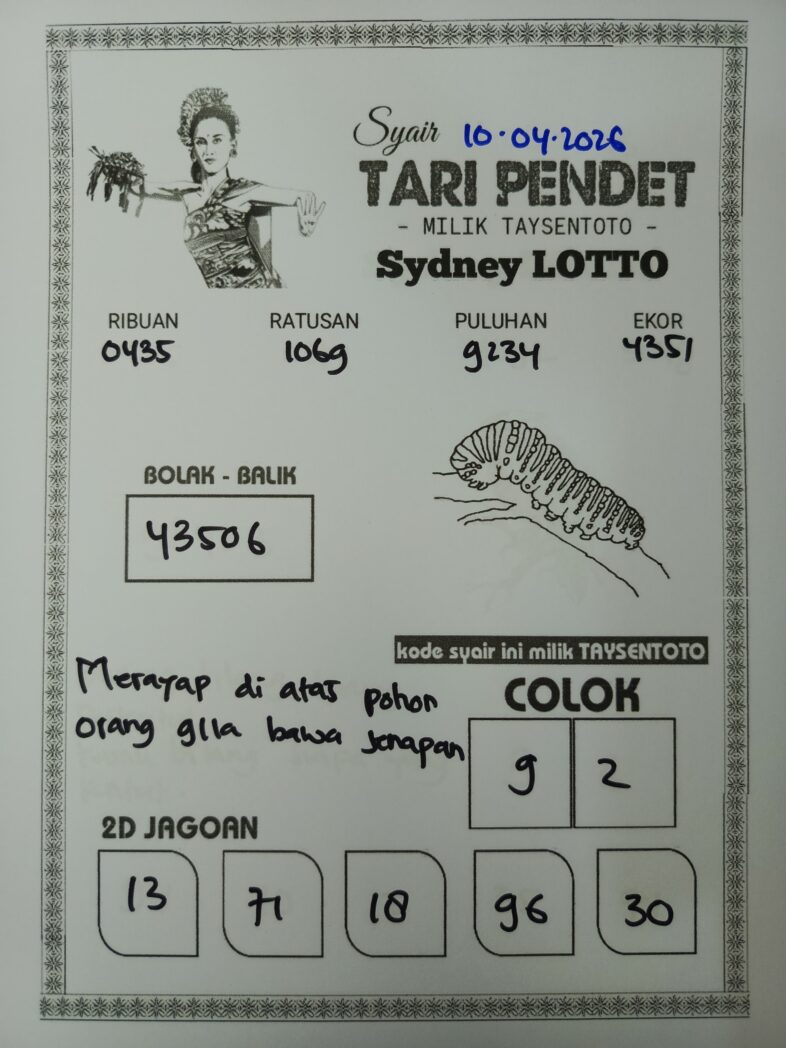 Syair Tari Pendet Sydney Hari ini Jumat, 10 April 2026