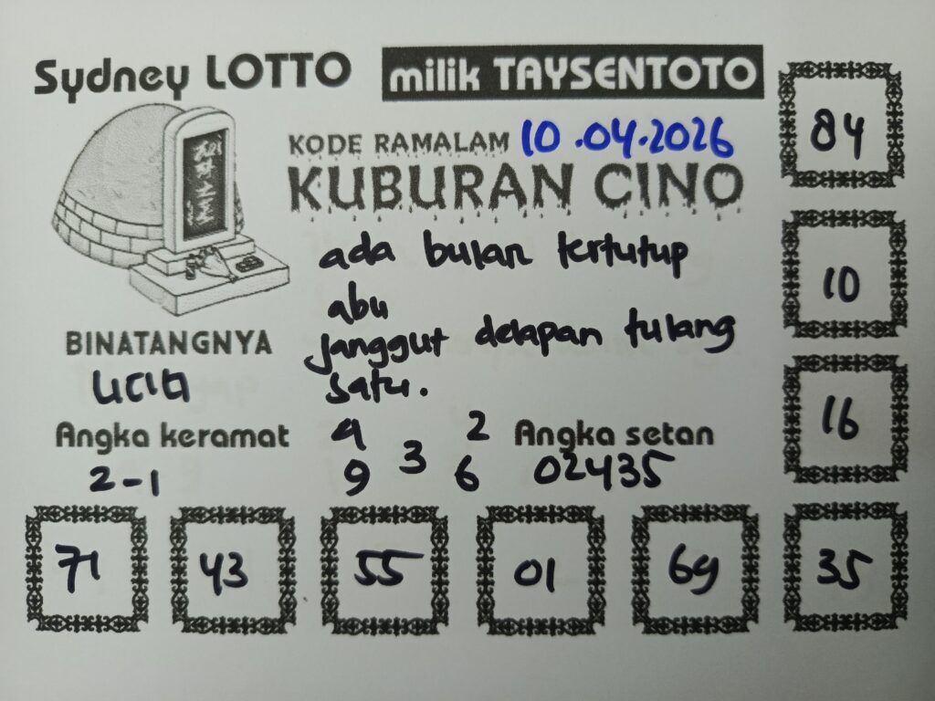 Syair Kuburan Cino Sydney Hari ini Jumat, 10 April 2026