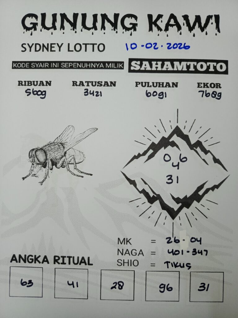 Syair Gunung Kawi SYDNEY LOTTO Hari ini 10 Februari 2026