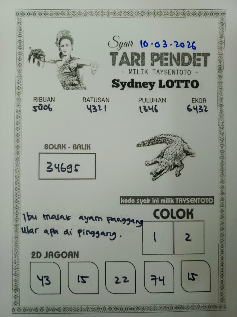 Syair Tari Pendet Sydney Hari ini Selasa, 10 Maret 2026