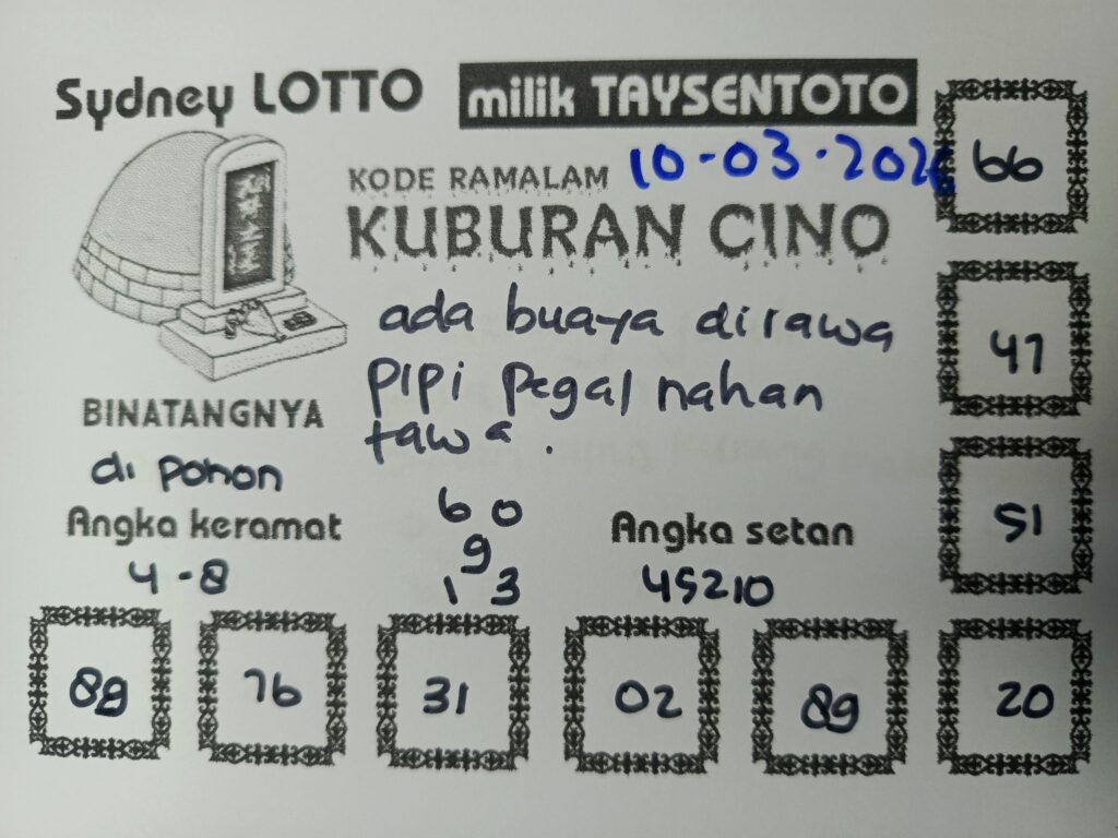 Syair Kuburan Cino Sydney Hari ini Selasa, 10 Maret 2026