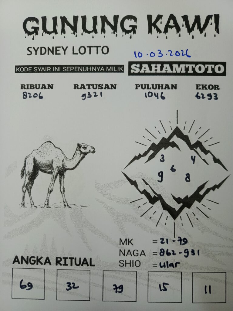 Syair Gunung Kawi SYDNEY LOTTO Hari ini 09MARET minggu 08 MARET 2026