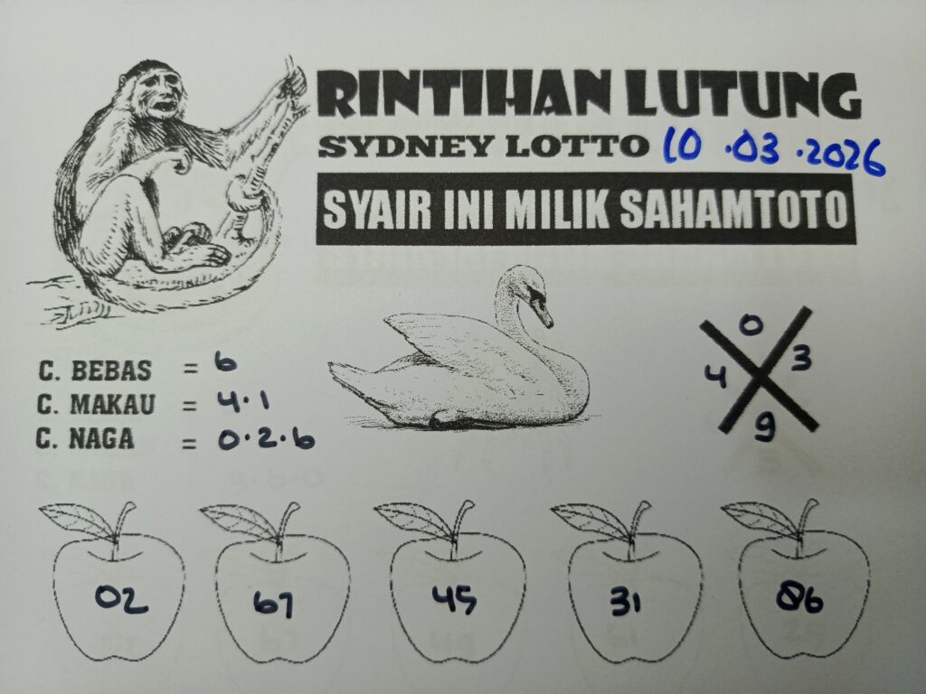 Syair Rintihan Lutung SYDNEY LOTTO Hari ini SENIN minggu 08 MARET 2026meraih jackpot setiap hari nya.