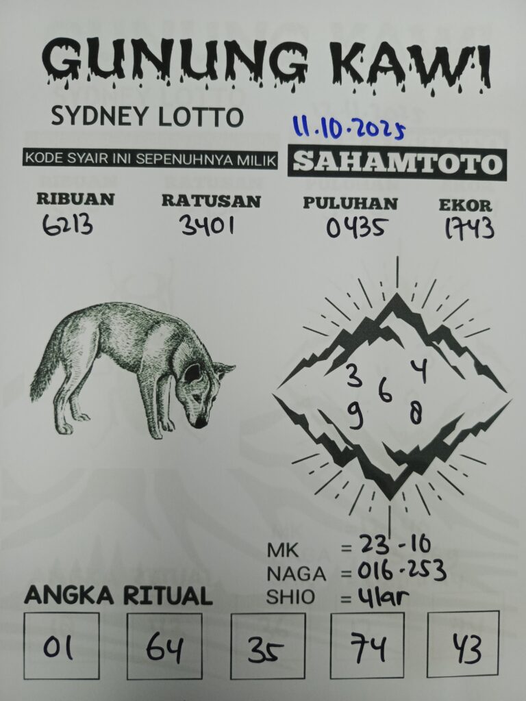 Syair Gunung Kawi Sydney Lotto Hari ini 10 November 2025