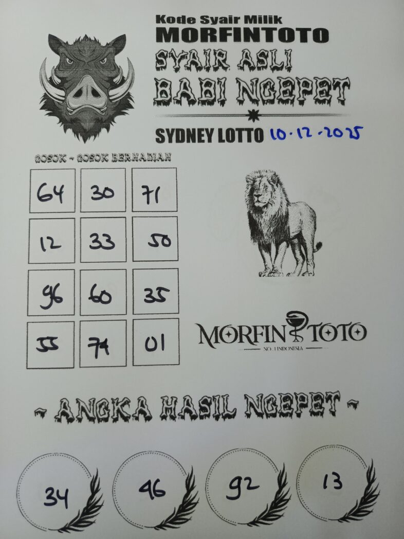 Syair lipan sakti Sydney Lotto Hari ini Rabu 10 Desember 2025