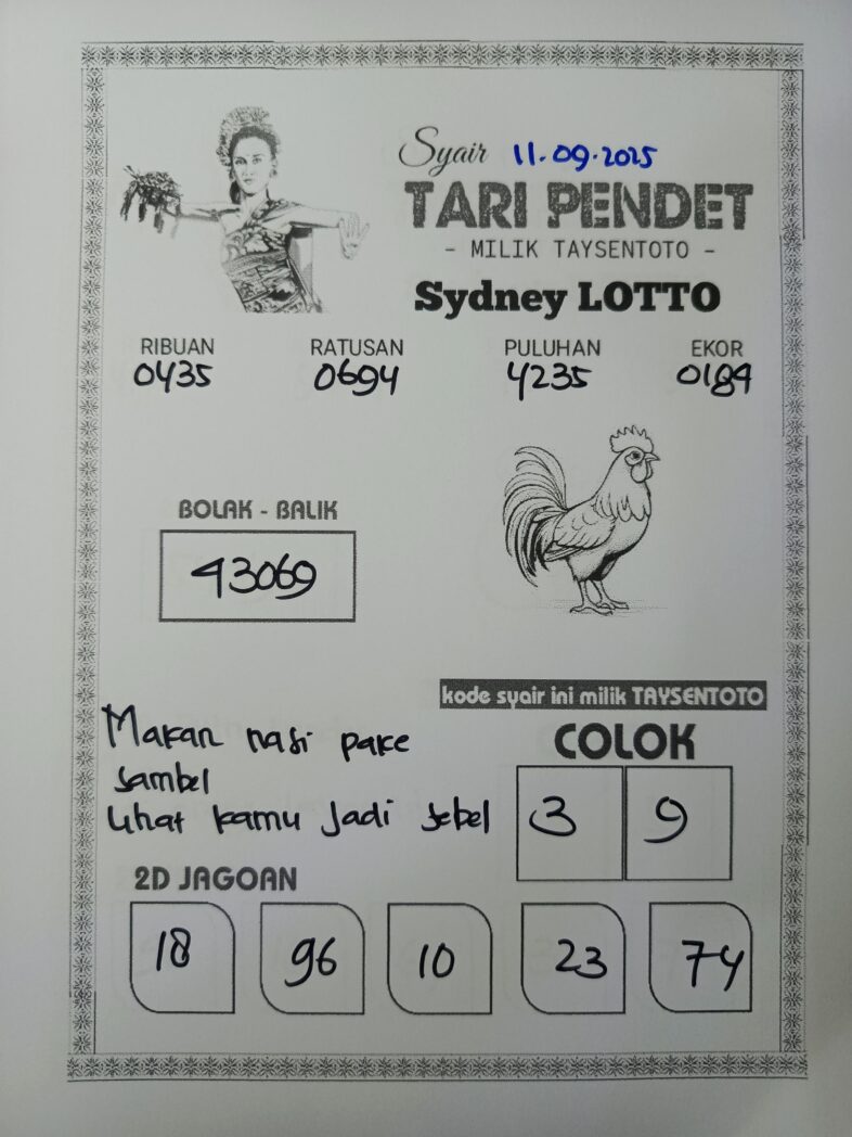 Syair Tari Pendet Sydney Hari ini Kamis, 11 September 2025