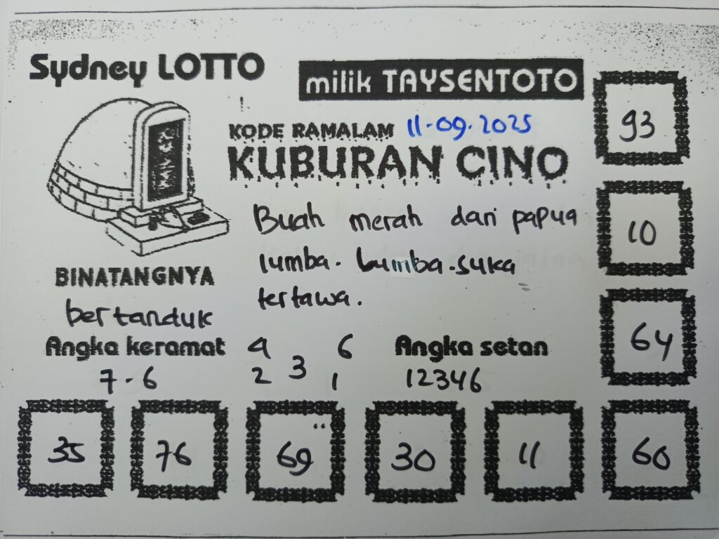 Syair Kuburan Cino Sydney Hari ini Kamis, 11 September 2025