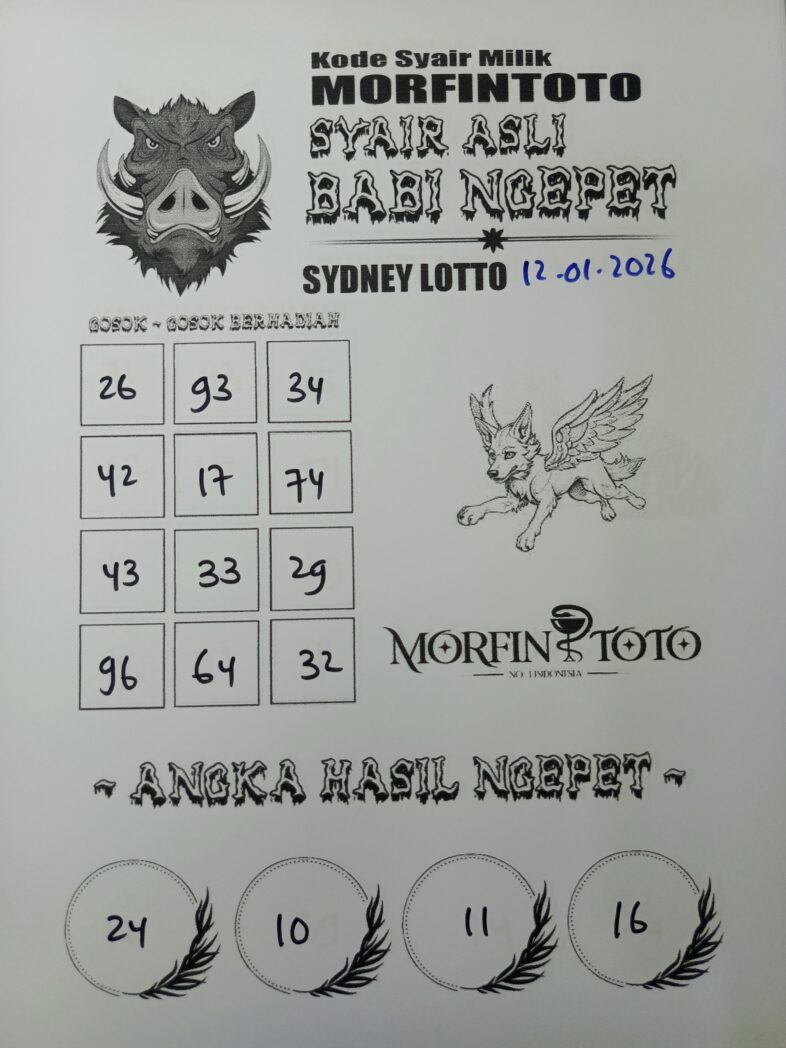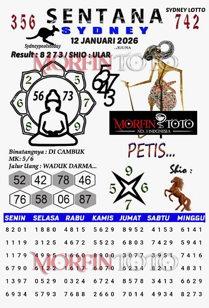 Syair lipan sakti Sydney Lotto Hari ini Senin 12 Januari 2026