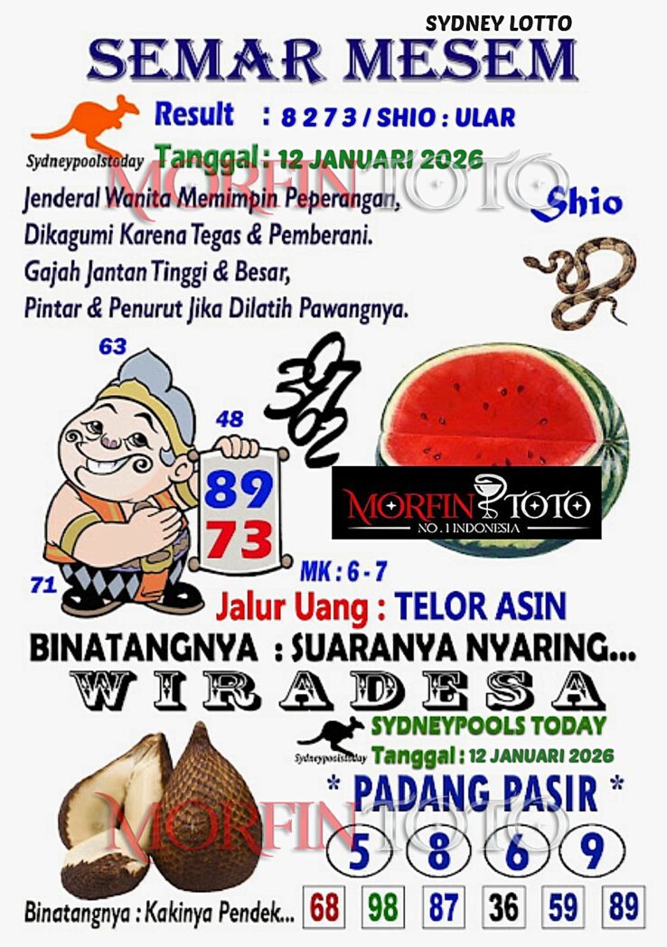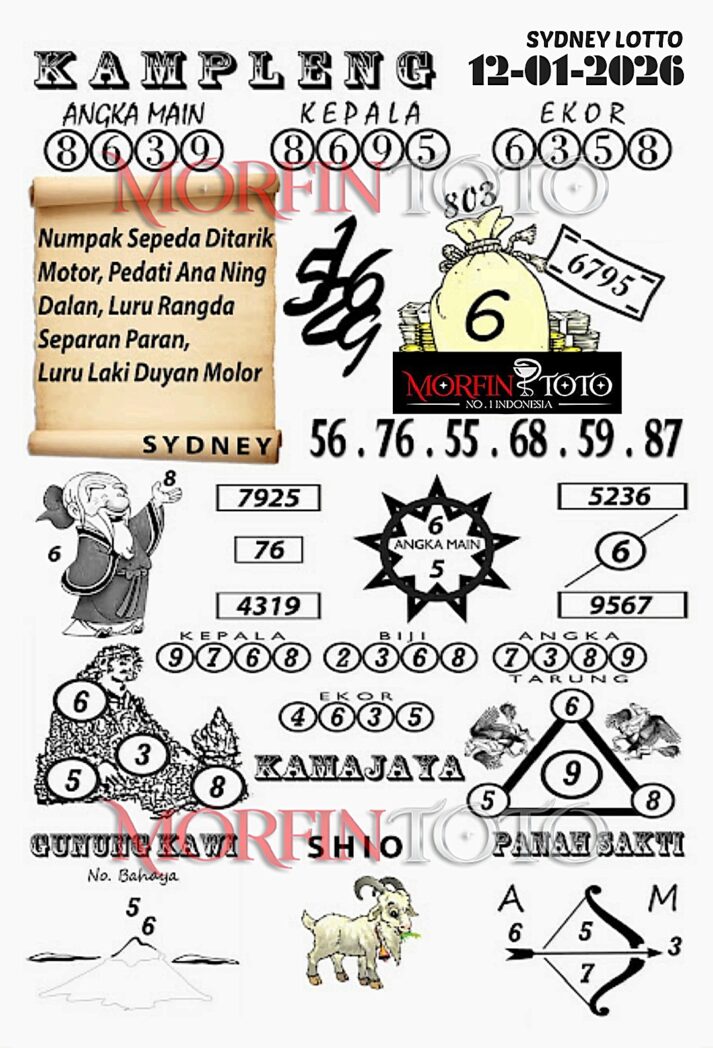 Syair lipan sakti Sydney Lotto Hari ini Senin 12 Januari 2026
