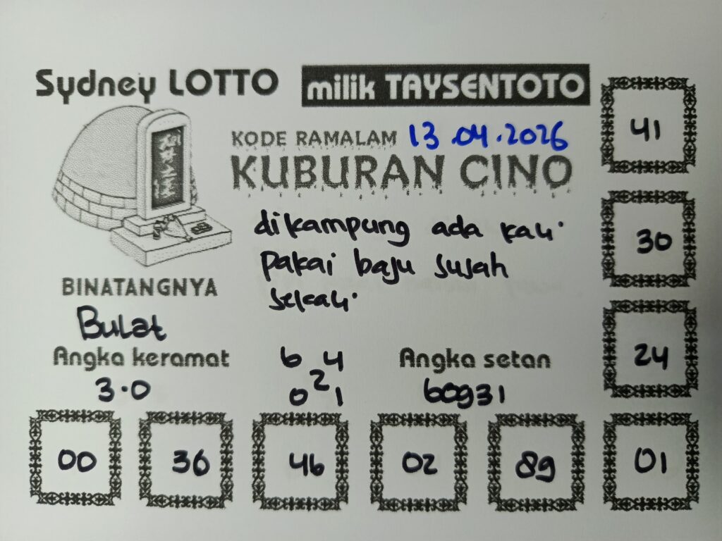Syair Kuburan Cino Sydney Hari ini Senin, 13 April 2026