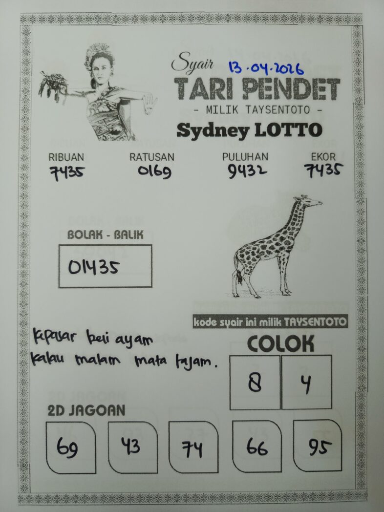 Syair Tari Pendet Sydney Hari ini Senin, 13 April 2026