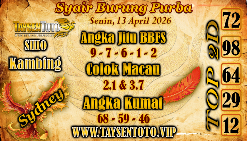 SYAIR TOGEL SENTANA SYDNEY LOTTO 13 APRIL 2026