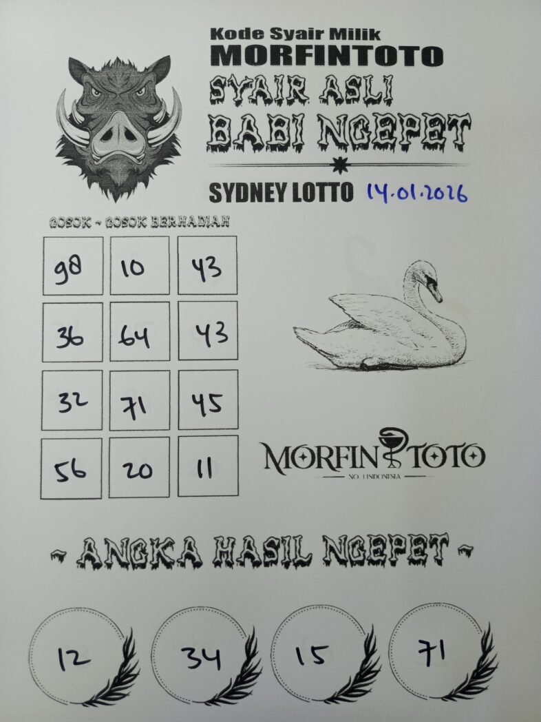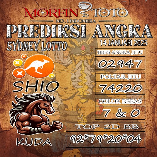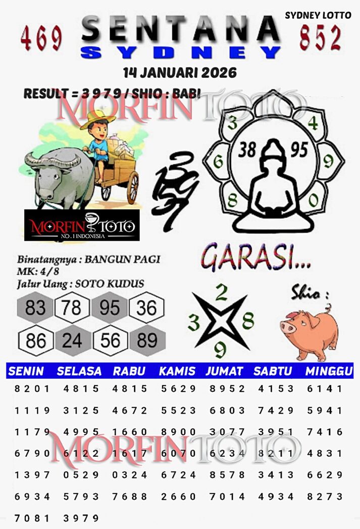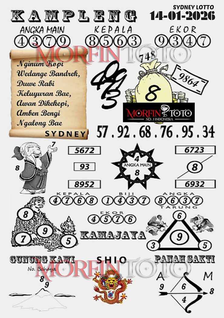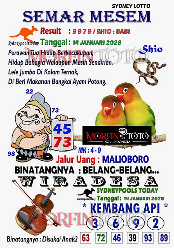 Syair lipan sakti Sydney Lotto Hari ini Rabu 14 Januari 2026