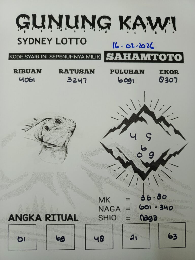 Syair Gunung Kawi Sydney Lotto Hari ini Senin 16 Februari 2026
