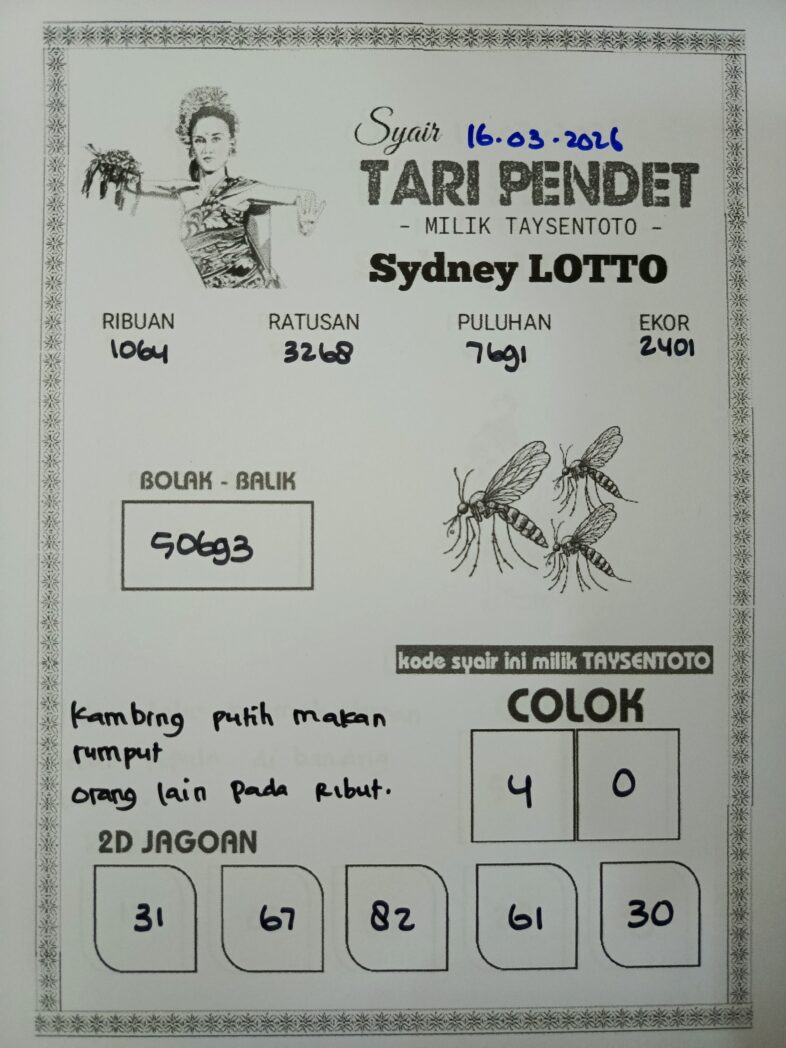 Syair Tari Pendet Sydney Hari ini Senin, 16 Maret 2026
