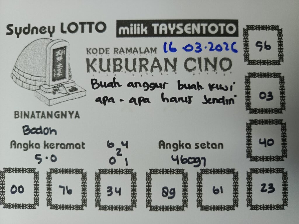 Syair Kuburan Cino Sydney Hari ini Senin, 16 Maret 2026