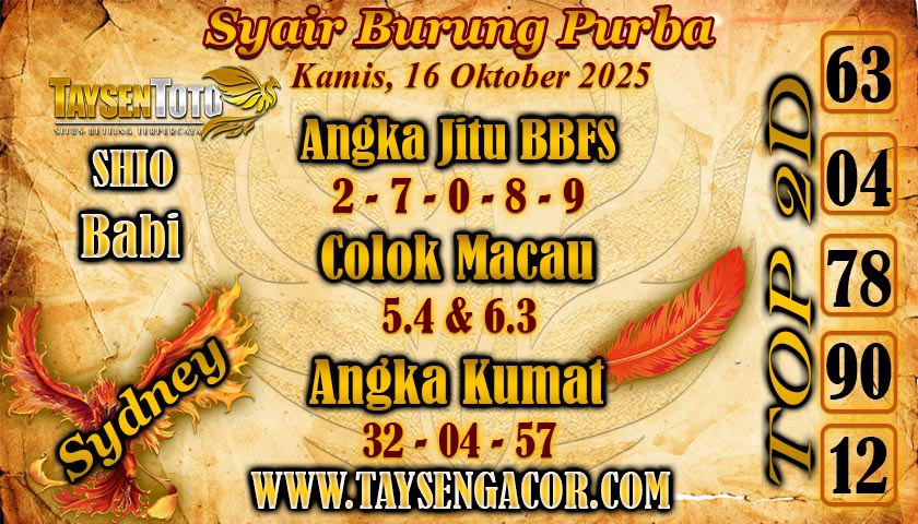 Syair Burung Purba Sydney Hari ini Kamis, 16 Oktober 2025