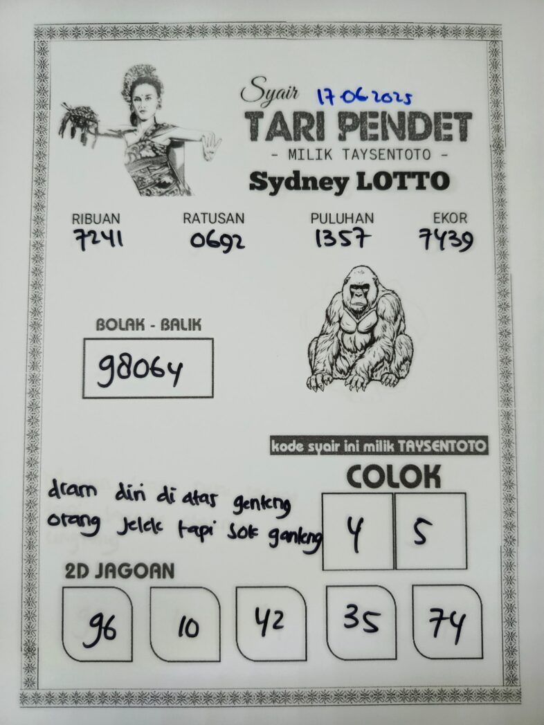 Syair Tari Pendet Sydney Hari ini Selasa, 17 Juni 2025